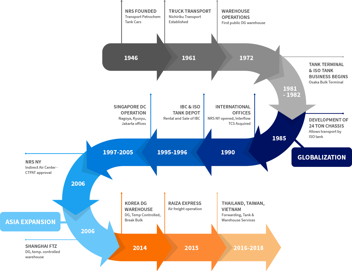NRS Logistics Inc, based in White Plains, New York was founded May 21, 1990. We are a wholly owned subsidiary of NRS Corporation based in Tokyo Japan. NRS was founded in 1946 and is comprised of several wholly owned subsidiaries each offering industry specific services within the chemical supply chain. These group companies are collectively referred to as the NRS GROUP.